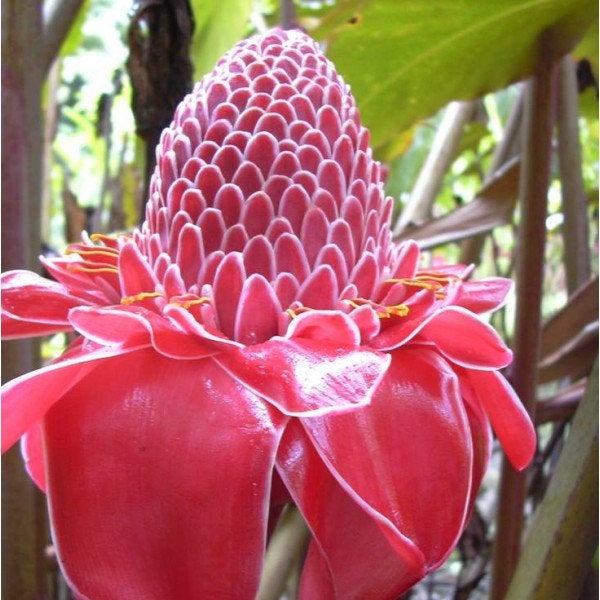 The Red Torch Ginger, is native to South East Asia. The torchs themselves have a large reddish head. The flower is about 25 cm across and is borne on a 1.5 meter leafless stem that arises straight out of the ground. Has a smooth textured, broad, dark green leaves. Its inflorescence makes like the Red Torch Ginger a good cut flower. Very easy to grow.